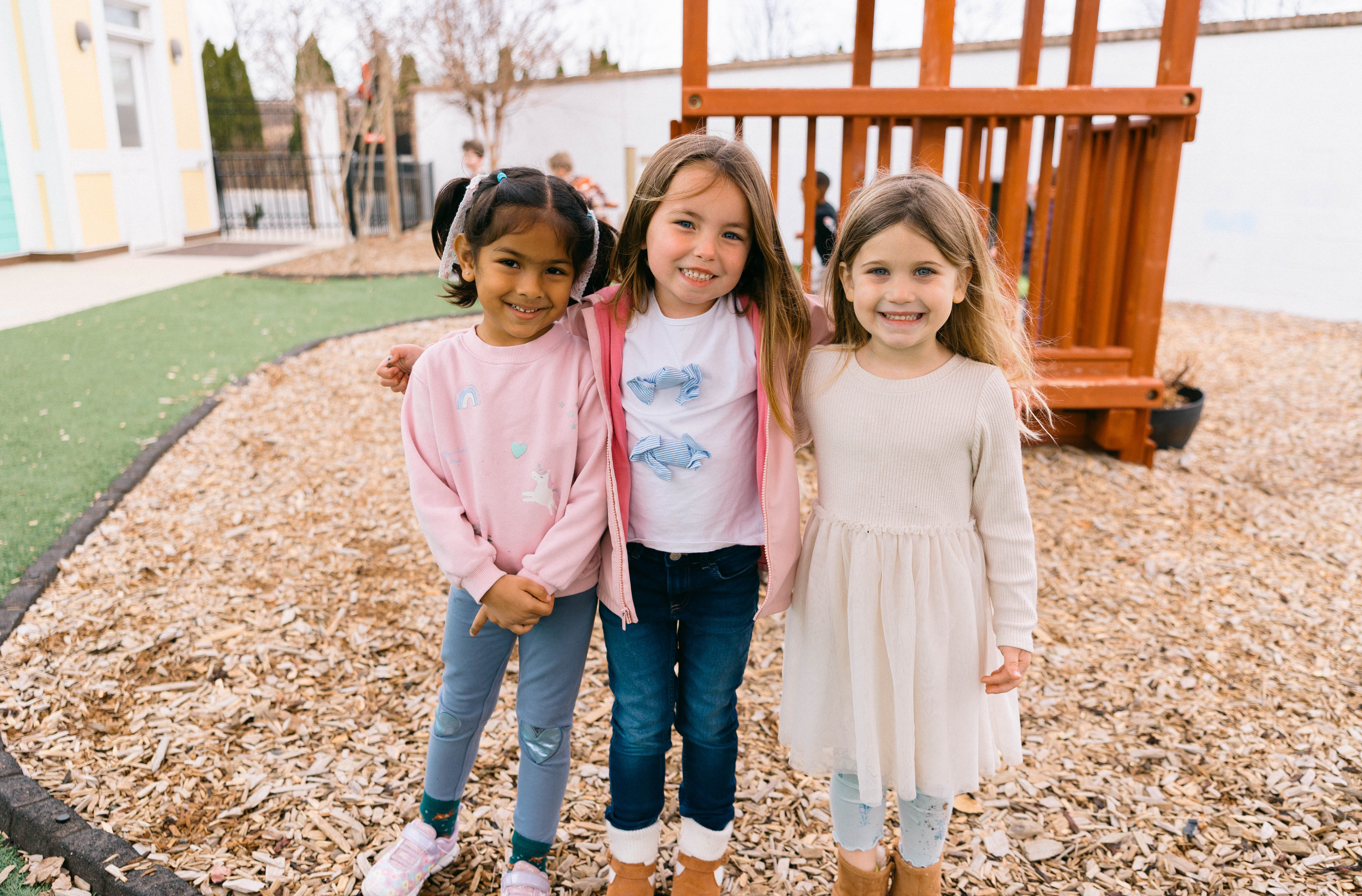 Our campus is thoughtfully integrated into a warm, family-centered community that values connection, convenience, and a meaningful foundation for early learning. Designed to balance intentional teaching with purposeful play, Oak Village offers families an inviting atmosphere and a smooth, supportive daily experience. Inside, our purpose-built facility features dedicated learning studios, inspiring outdoor environments, and carefully curated spaces that encourage exploration, movement, and hands-on discovery—creating a place where children truly thrive.