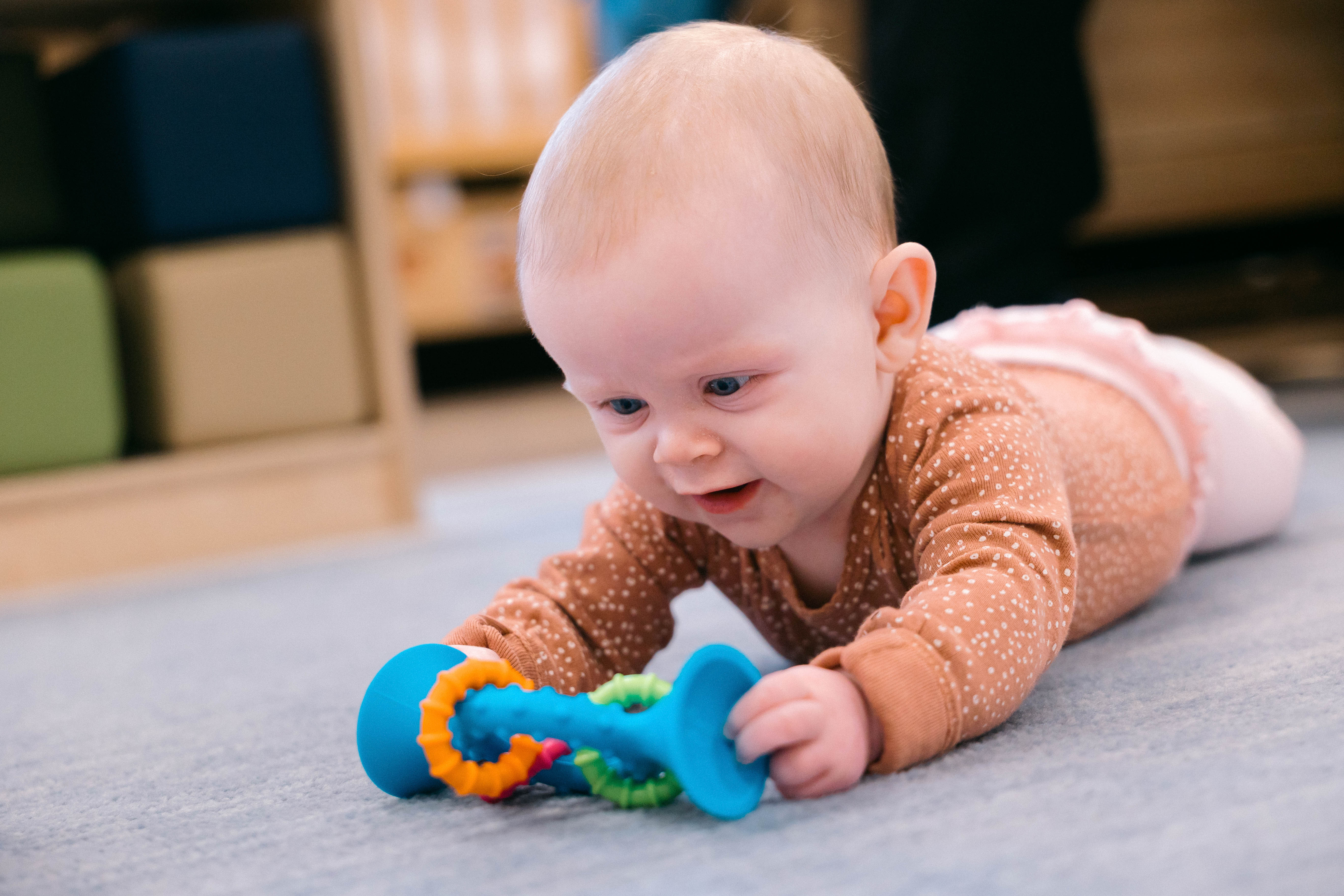 Soft textures, movement, music, and visual stimulation provide infants with meaningful opportunities to explore and develop motor and cognitive skills in a safe, thoughtfully prepared setting.